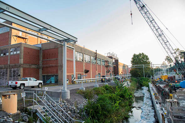 A view of the Outfall 200 area, where the headwaters originate for the Upper East Fork Poplar Creek. The U.S. Department of Energy is building a Mercury Treatment Facility that will allow the demolition of several large mercury-contaminated buildings at the Y-12 National Security and reduce the flow of mercury into East Fork Poplar Creek. (Photo via DOE’s EM Update on Tuesday, Dec. 11, 2018)