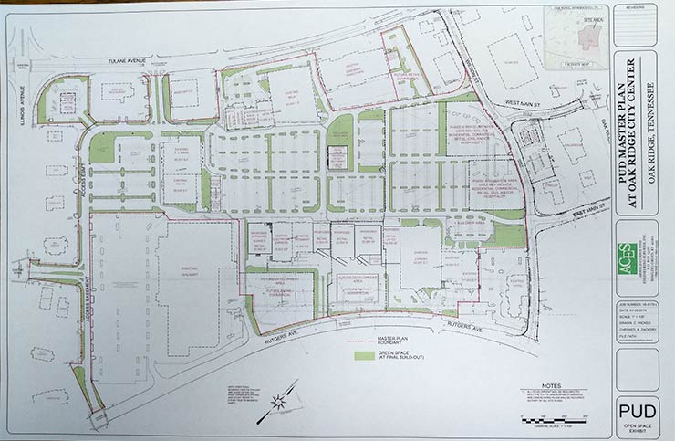 After being discussed today, the potential changes could be considered by the Planning Commission for a recommendation to Oak Ridge City Council next week, during an April 18 meeting. The changes would be considered as an amendment to the planned unit development for Main Street Oak Ridge. Among other things, the revisions would replace proposed multifamily residential units near Rutgers Avenue with retailers, and they would propose mixed-use areas in a future phase along Wilson Street.
