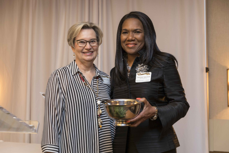Connie Martin, vice president and chief support officer for Covenant Health and outgoing chair of the Oak Ridge Chamber of Commerce’s Board of Directors, presents Stephanie Hale-Smith of State Farm Insurance with the Chamber’s 2018 Kerry Trammell Volunteer of the Year Award. (Submitted photo)