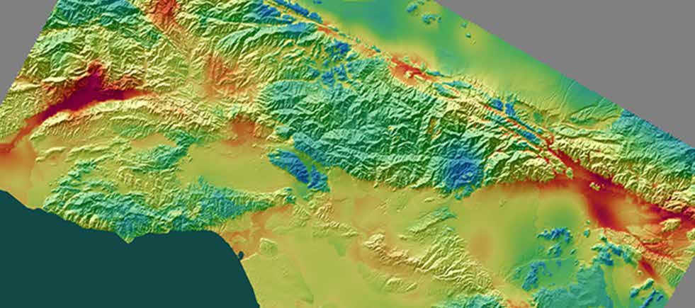 In 2017, a team led by Thomas Jordan of the Southern California Earthquake Center used the Titan supercomputer at Oak Ridge National Laboratory to calculate a physics-based seismic hazard model for central California. The seismic hazard map above shows the magnitude for the Los Angeles region, defined by the amount of change of a surface or structure in a two-second period. The map provides engineers with vital information needed to design more seismically safe structures. (Image courtesy ORNL)