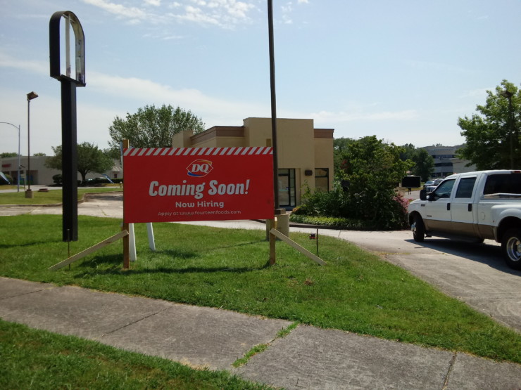 Workers were at the Dairy Queen restaurant site on Monday, putting up a “DQ Coming Soon!” sign and unloading construction equipment.