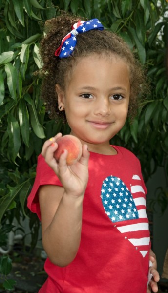 A young camper displays fruit from the Children’s Museum’s Let Go Green! Environmental Center and Gardens. (Submitted photo)