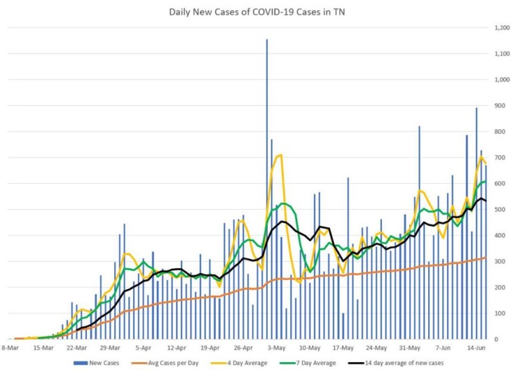 Some of the highest new case totals in Tennessee have been reported in the past four days. On Sunday, June 14, there were 885 new COVID-19 cases reported. That was the second-highest new case total reported in the state.