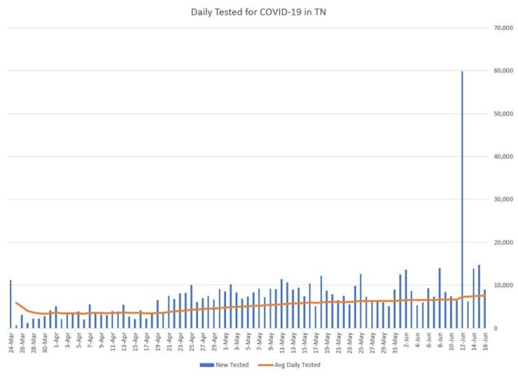 There have been 638,772 COVID-19 tests in Tennessee at the state public health laboratory and at other labs. That was approaching a doubling of total tests since late May.