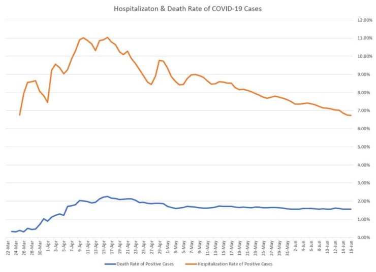 The doubling time in the number of cases and deaths is roughly about a month and a week. That’s a longer doubling time than what was reported when the state passed 20,000 cases in late May.