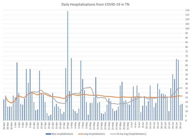 The highest daily total in Tennessee, 1,410, was reported just four days ago, on Friday.
