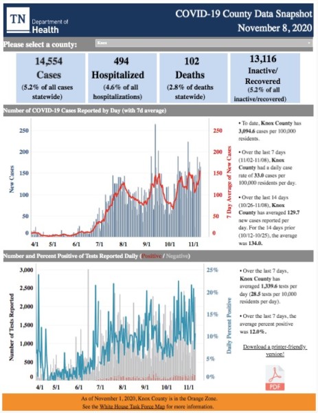 There have been a total of 14,554 cases in Knox County, with 102 deaths and 494 hospitalizations.