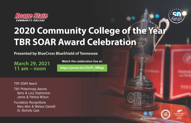 Roane State’s virtual TBR SOAR Award Celebration, presented by BlueCross BlueShield of Tennessee, will honor Dr. Cash as well as other alumni and philanthropy award recipients. The ceremony was available to watch live on the college’s YouTube page beginning at 11 a.m. Eastern Time on March 29. The link to the page is youtube.com/roanestatecc.