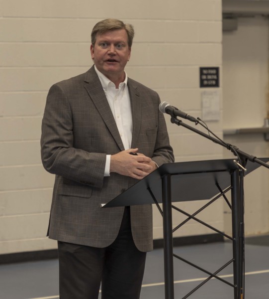 Consolidated Nuclear Security Chief Operating Officer Bill Tindal announces the $8,500 donation from CNS to the endowment that provides scholarships from the Scarboro Alumni Association. (Photo courtesy CNS/Y-12)