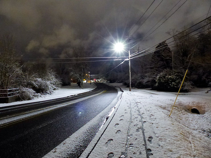 The snow started falling at about 1 p.m. Sunday and continued until about 9. Oak Ridge Today measured close to 1.5 inches of snow in central Oak Ridge.