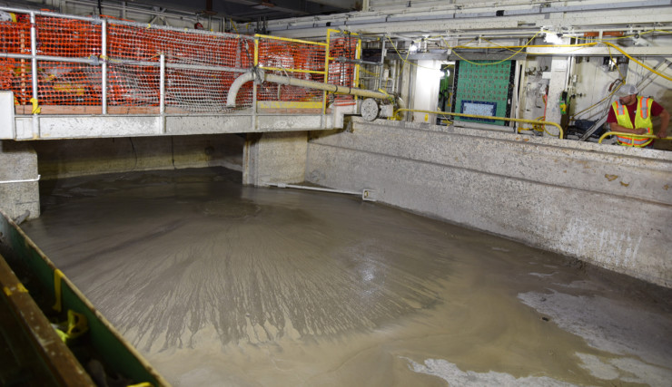 The Bulk Shielding Reactor was built in the 1950s for radiation shielding studies. Crews removed asbestos from the facility and recently filled the 27-foot-deep reactor pool with a concrete mixture to prepare the building for demolition this fall.