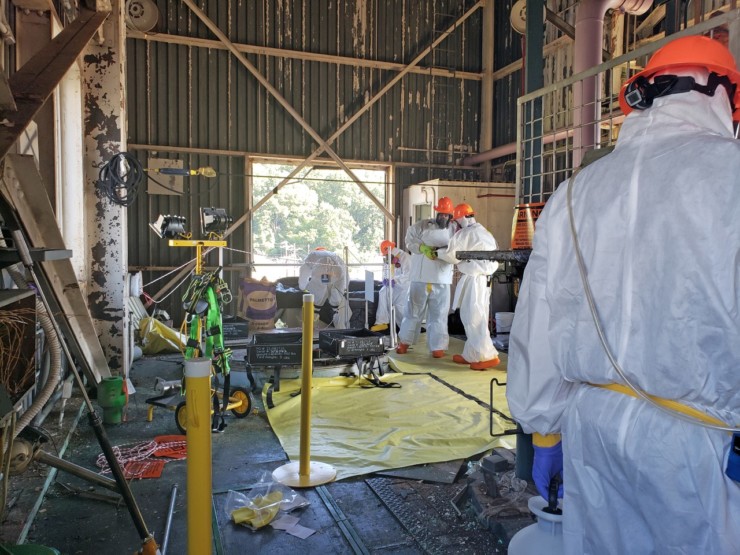 Next door, other teams are preparing the Low Intensity Test Reactor for its teardown. The facility started operations as a training reactor in 1951 and ended operations in 1968. Crews have completed characterization, and other pre-demolition activities are now under way to prepare it for demolition later this year.