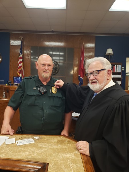Anderson County Sheriff’s Office Corporal Marty Blackwell, left, is pictured above receiving his new rank with Anderson County General Sessions Court Judge Don Layton. (Submitted photo)