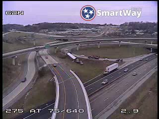 The I-75 South ramp to I-640 East was closed Wednesday morning due to an overturned tractor trailer. (Photo courtesy TDOT/Mark Nagi via Twitter)