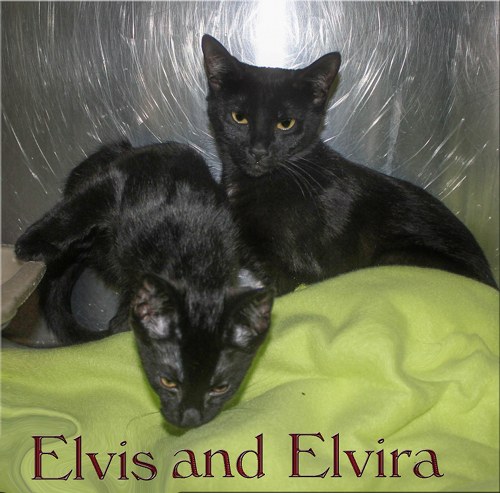 Save a life today for $55. Elvis and Elvira are available now for adoption. Elvira is the mother, and Elvis is her male kitten.