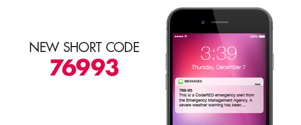 A short code is the five- or six-digit number sequence that appears on a mobile device when a message is delivered. This update means that any citizen who saved the previous short code in their phone as a contact will no longer see the name they designated (i.e. “CodeRED Alert”), but users will continue to receive messages just as they have in the past.