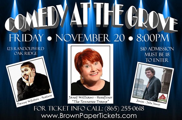 Comedy at the Grove is back at the Grove Theater in Oak Ridge today (Friday, November 20). The show starts at 8 p.m.