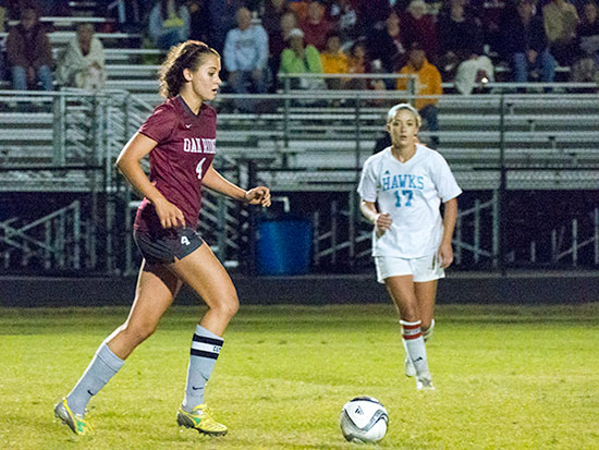 Oak Ridge senior defender Katie Welsh (5) was named to the 2015 AAA All-State Team. Above, Welsh defends against junior Paige Hewitt (14) of Hardin Valley on Wednesday, Sept. 23, 2015. (Photo by John Huotari/Oak Ridge Today)