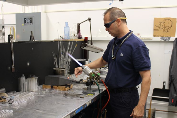 ORNL has its own glass shop on site. Scientific Glassblower and Shop Manager Jason Craig has been blowing glass for almost 25 years.