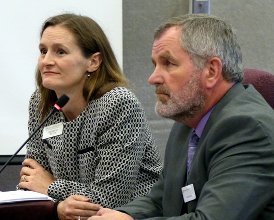 Margaret Norris, left, and Rex Barton of the Municipal Technical Advisory Service at the University of Tennessee deliver the results of a six-month review of the Oak Ridge Police Department to City Council on Thursday, Oct. 15, 2015. (Photo by John Huotari/Oak Ridge Today)