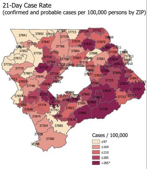 The seven-day average of new daily cases of COVID-19 in Anderson County fell Tuesday, a reversal of a trend that had been in place since at least late June.