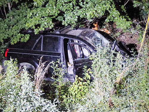A driver was injured after an SUV crashed down an embankment alongside South Illinois Avenue in Oak Ridge late Sunday or early Monday, July 4, 2016. The embankment is alongside a big hill coming down into Oak Ridge between Centrifuge Way and Scarboro Road. (Photo by John Huotari/Oak Ridge Today)