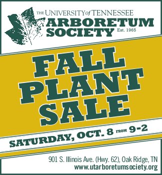 The University of Tennessee Arboretum Society’s Fall Plant Sale will be held Saturday, October 21, from 9 a.m. to 2 p.m. at the UT Arboretum in Oak Ridge.